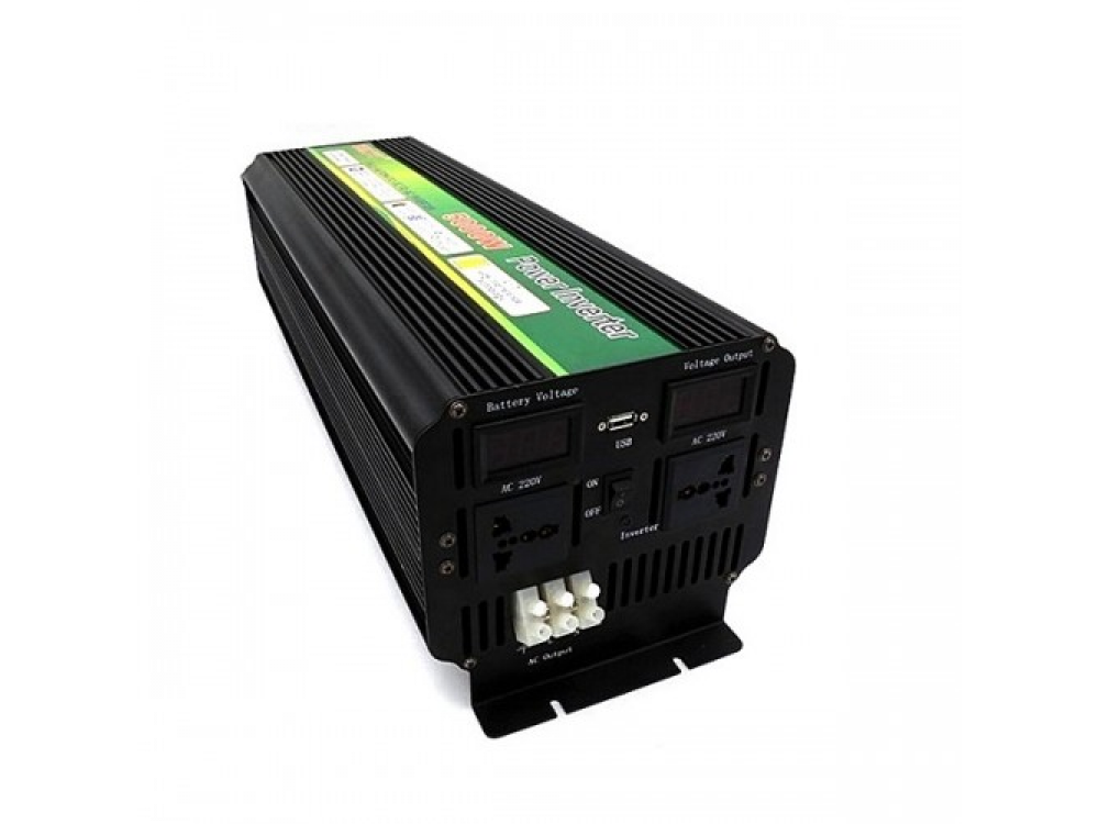 Надежный и мощный автомобильный инвертор 5000W с увеличенной производительностью более 95%. Способен выдержать пиковую мощность 10000W. Подходит для подключения холодильников, чайников, микроволновых печей и других мощных приборов. На выходе выдает 220В переменного тока с модифицированной синусоидой.