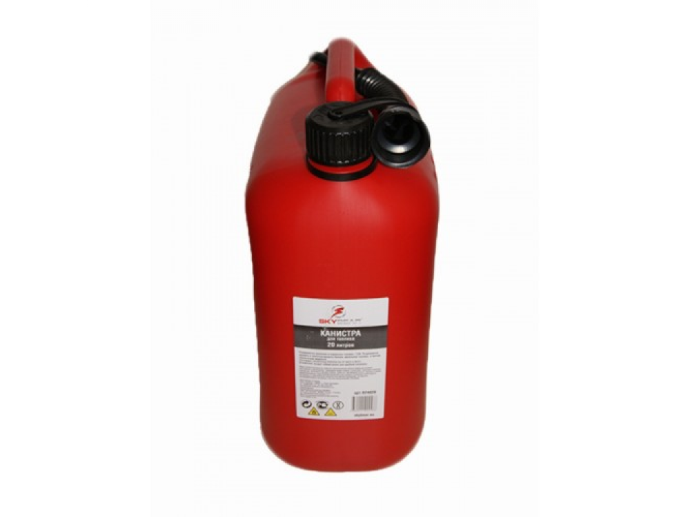 Канистра для топлива 20 л. Изготовлена из бензостойкого полиэтилена для перевозки и хранения топлива и ГСМ (Бензин, дизельное топливо и другие технические жидкости). Материал: Полиэтилен с добавлением антистатической добавки (Не накапливает статический заряд). В комплекте — крышка с защитой от вскрытия детьми и гибкий шланг.