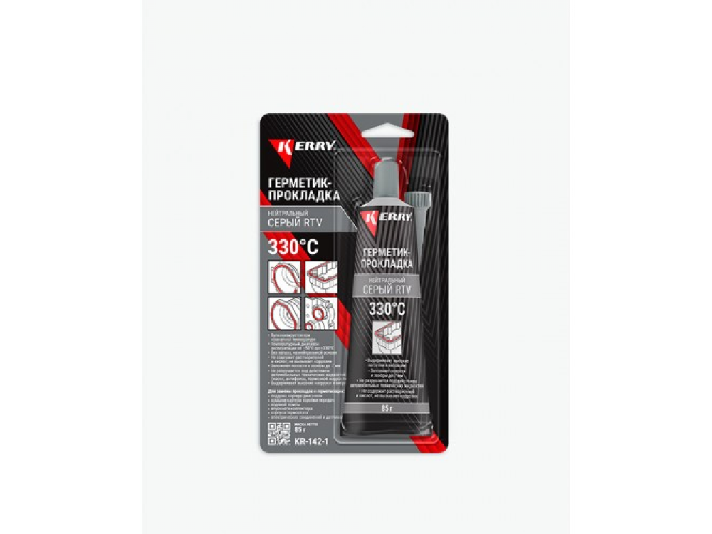Вулканизирующийся при комнатной температуре RTV-силикон образует прочную, эластичную прокладку (удлинение до разрыва 500%). Обладает повышенной адгезией к поверхностям из стали, чугуна, алюминия. Стоек к воздействию технических жидкостей автомобиля (смазочных материалов, охлаждающих жидкостей, растворов кислот и щёлочей). Заполняет полости и зазоры до 7 мм. Отверждённый герметик может эксплуатироваться в температурном диапазоне от –50°C до +330°C (кратковременно).