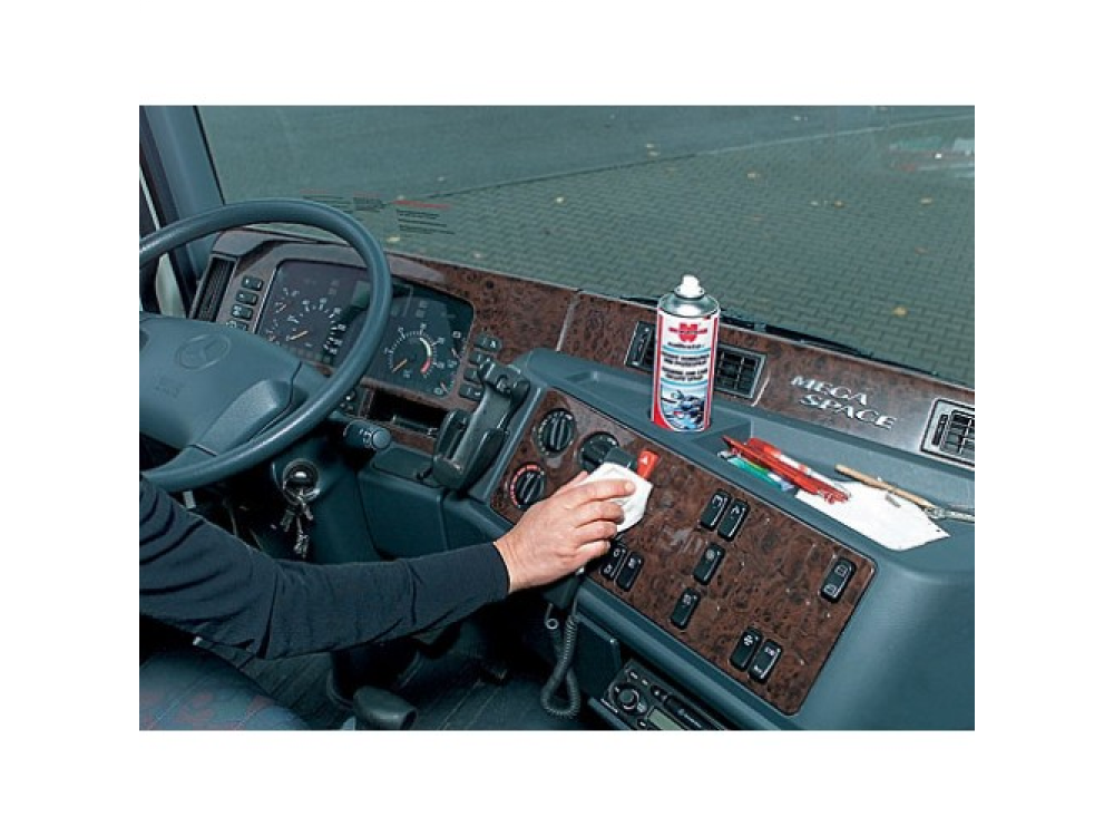 Идеально ухаживает и очищает пластмассовые поверхности в салоне автомобиля