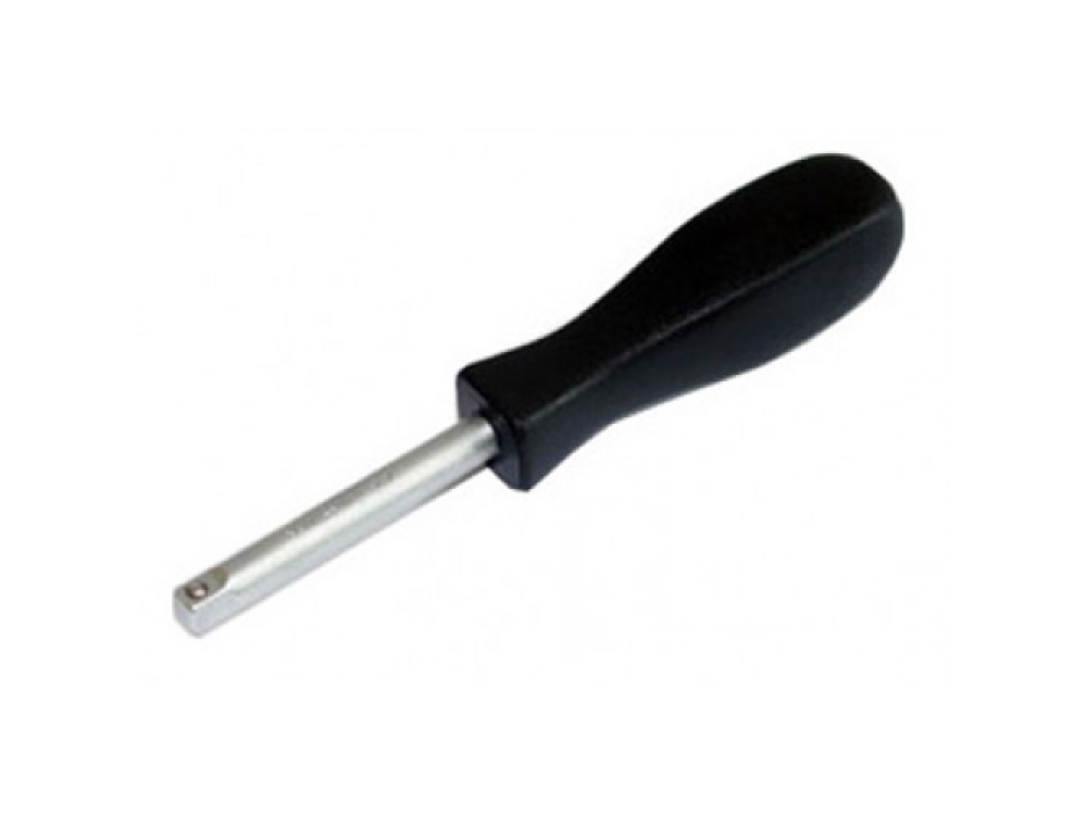 Отверточная рукоятка - инструмент, применяющийся для закрепления различных насадок, в первую очередь, вставок-бит с адаптером или насадок с отверточными вставками. Рукоятка позволяет прилагать достаточно высокие рабочие нагрузки, а наличие присоединительного гнезда в торцевой части ручки допускает установку привода, что увеличивает момент и расширяет использование инструмента, работающего и в качестве удлинителя. Инструмент изготовлен из хромованадиевой стали и снабжен пластиковой рукояткой.
