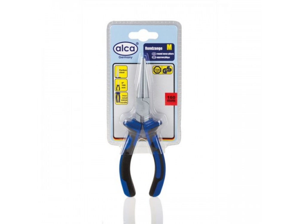 Круглогубцы 160 мм. Карбоновая сталь твердости; HCR 42-48. Изолированные эргономичные ручки.