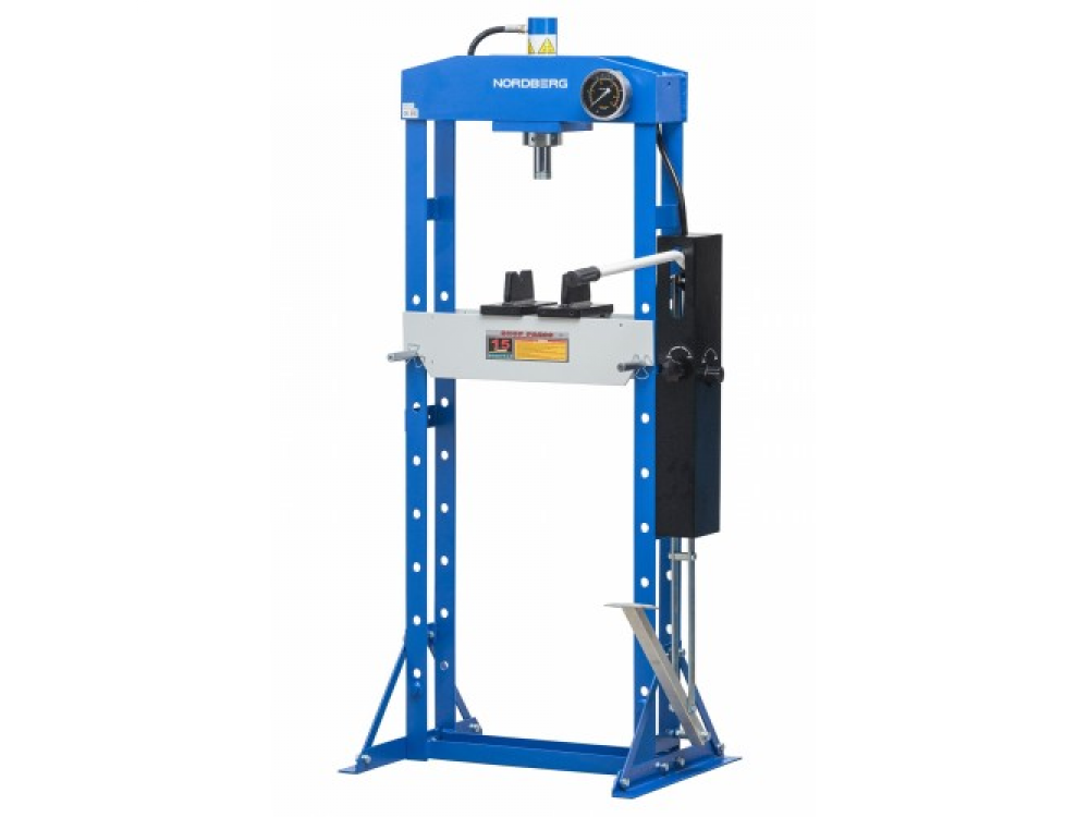 Напольный гидравлический пресс с ножным приводом NORDBERG N3615F Надежная сварная конструкция рамы Горизонтальное смещение гидравлического цилиндра Регулируемый стол Две пластины-трапеции Гидравлический цилиндр 15 тонн. Гидравлический насос с ножным приводом. Автоматический возврат поршня. Предохранительный клапан для защиты от перегрузок. Глицеринозаполненый манометр 90 мм для контроля силы нагрузки. Ножное управление (педаль) Поставляется в деревянном боксе.