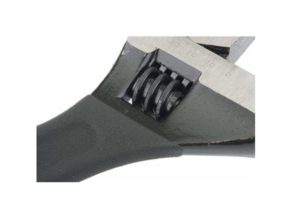 Ключ разводной изготовлен из углеродистой стали и подвергнут селективной закалке. Для разведения губок на точно заданное расстояние на неподвижной губке нанесена градуировка, а на подвижной – точечная риска. Встроенный в тело ключа червячно-винтовой механизм защищен от коррозии. Рожковый разводной ключ предназначен для монтажа и демонтажа резьбовых соединений с широким диапазоном размеров крепежа.