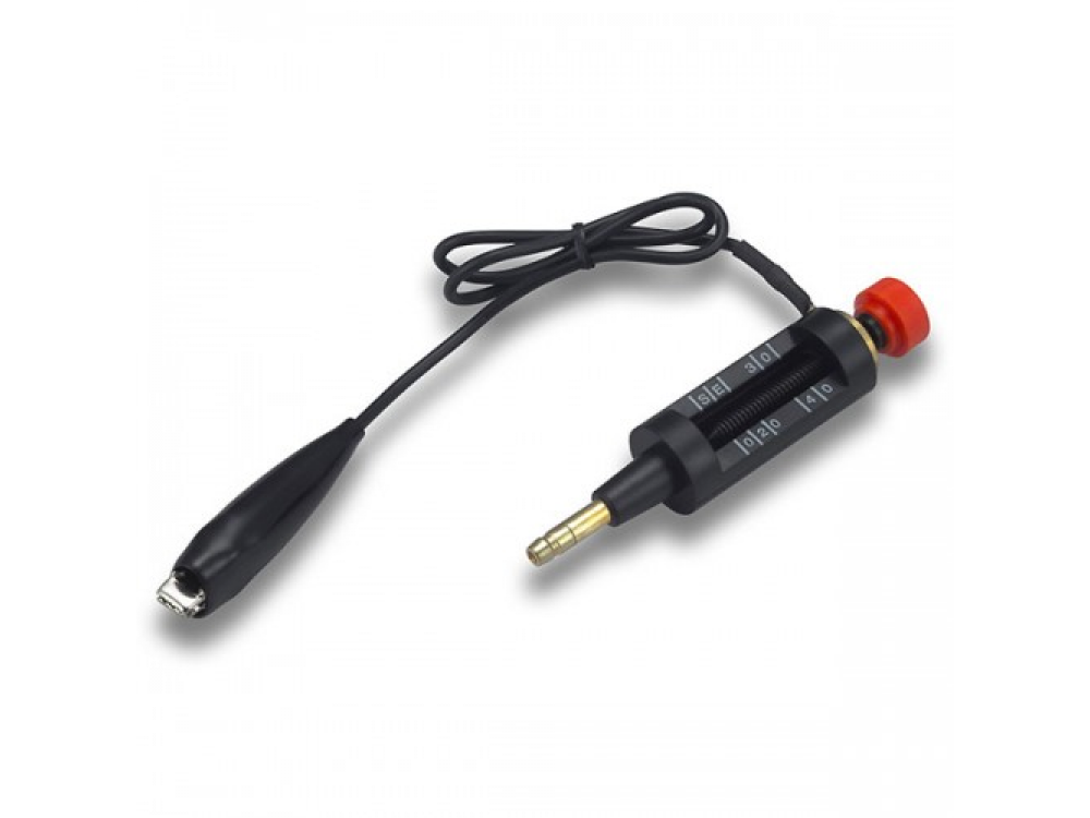 Пробник для проверки искры зажигания МАСТАК 103-12006 предназначен для быстрой и безопасной проверки качества искры, генерируемой катушкой зажигания. Применяется в автосервисах, на станциях технического обслуживания автомобилей (СТОА), в автомастерских, а также в частных гаражах продвинутых автовладельцев. Пробник является имитацией работы свечи зажигания и подсоединяется между высоковольтным проводом и «массой» автомобиля. Регулировочным винтом тестируется «пробой» искры, который зависит от напряжения, генерируемого катушкой зажигания. Технические характеристики: - Тестируемое напряжение катушки, В – до 40000. - Масса, кг – 0,11.